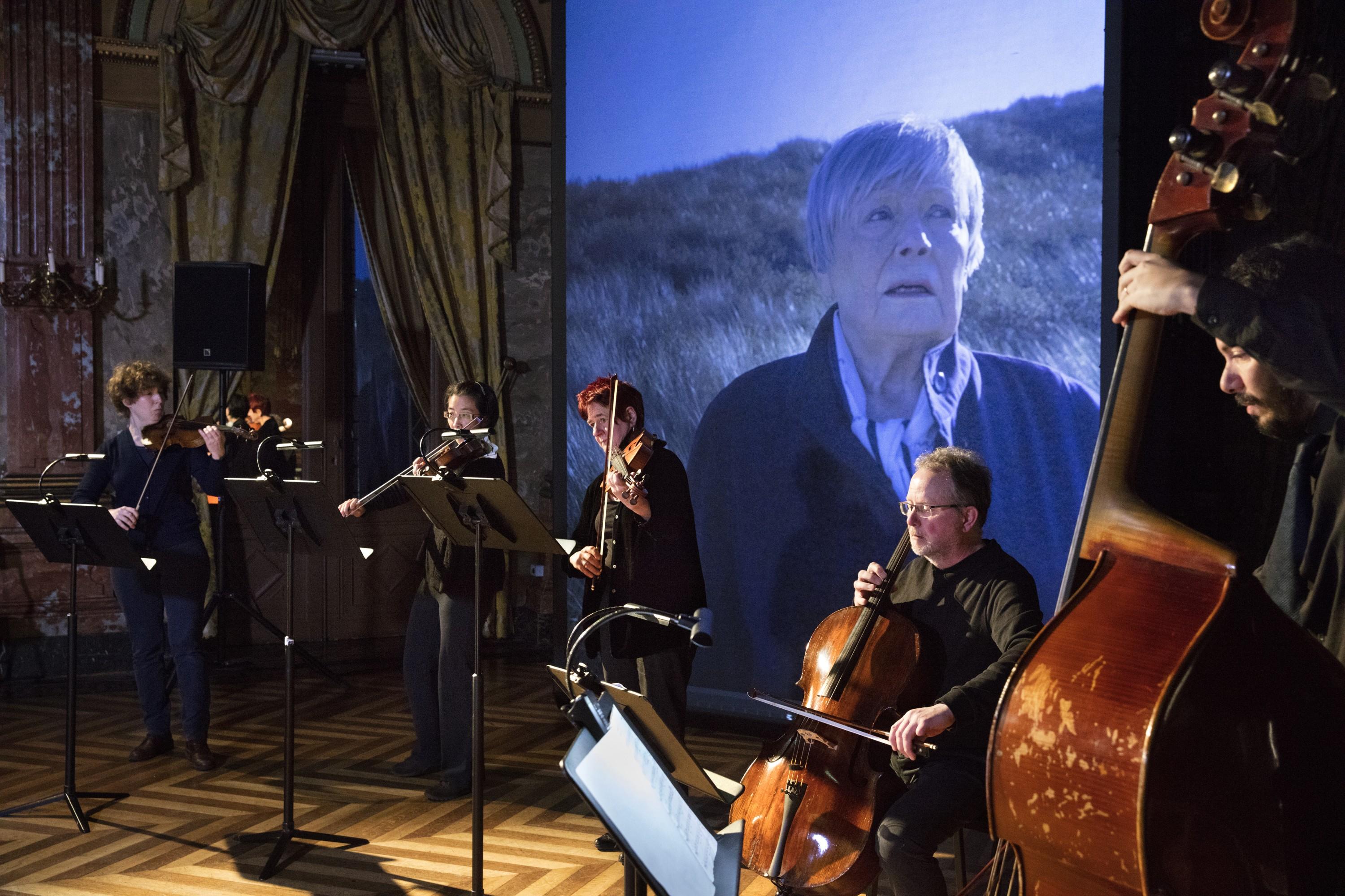 En ja, het werkt – de muziek raakt fysiek een snaar. Op de beeldkolom tolkt Elena Evstratova de tekst virtuoos voor doven.