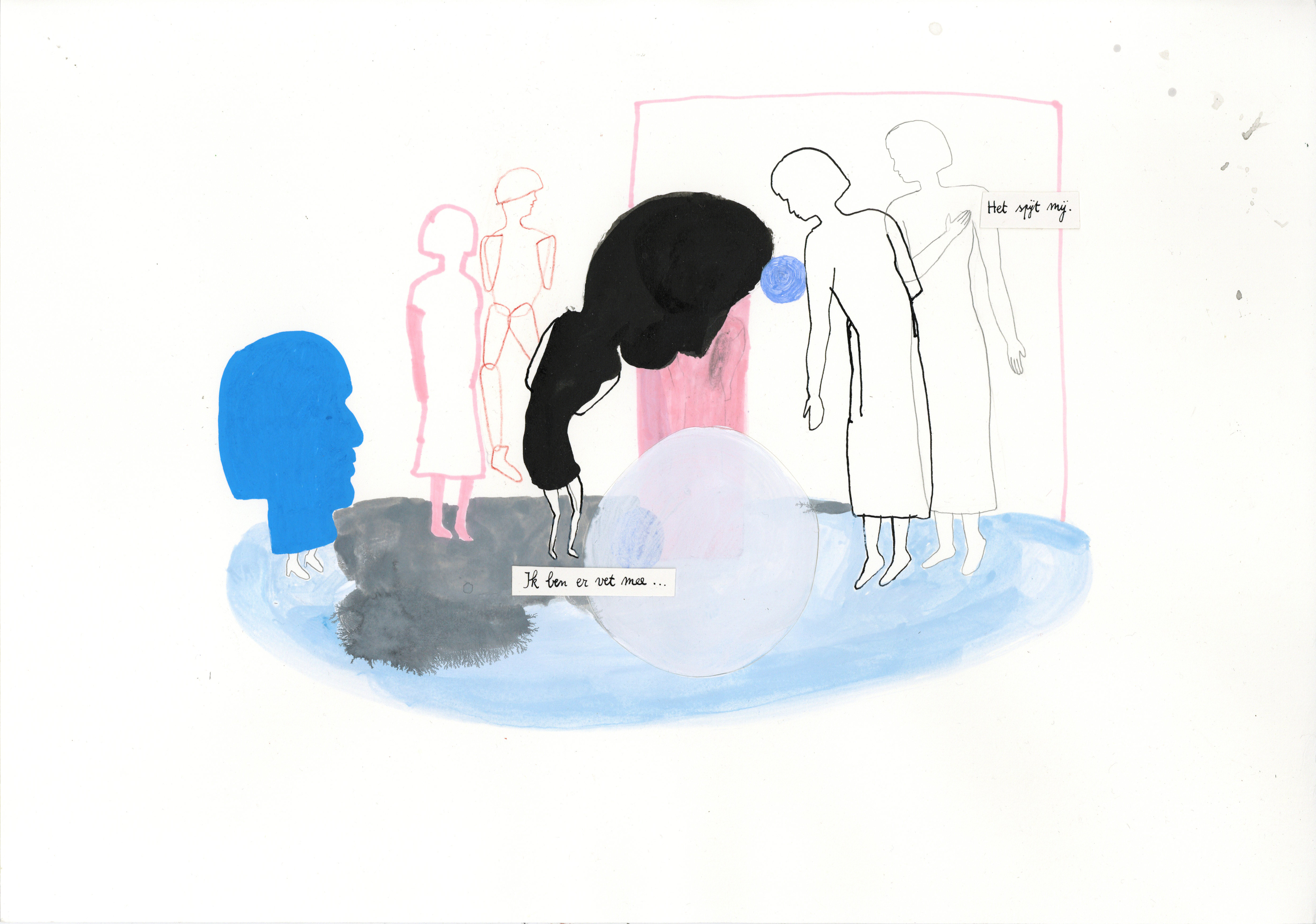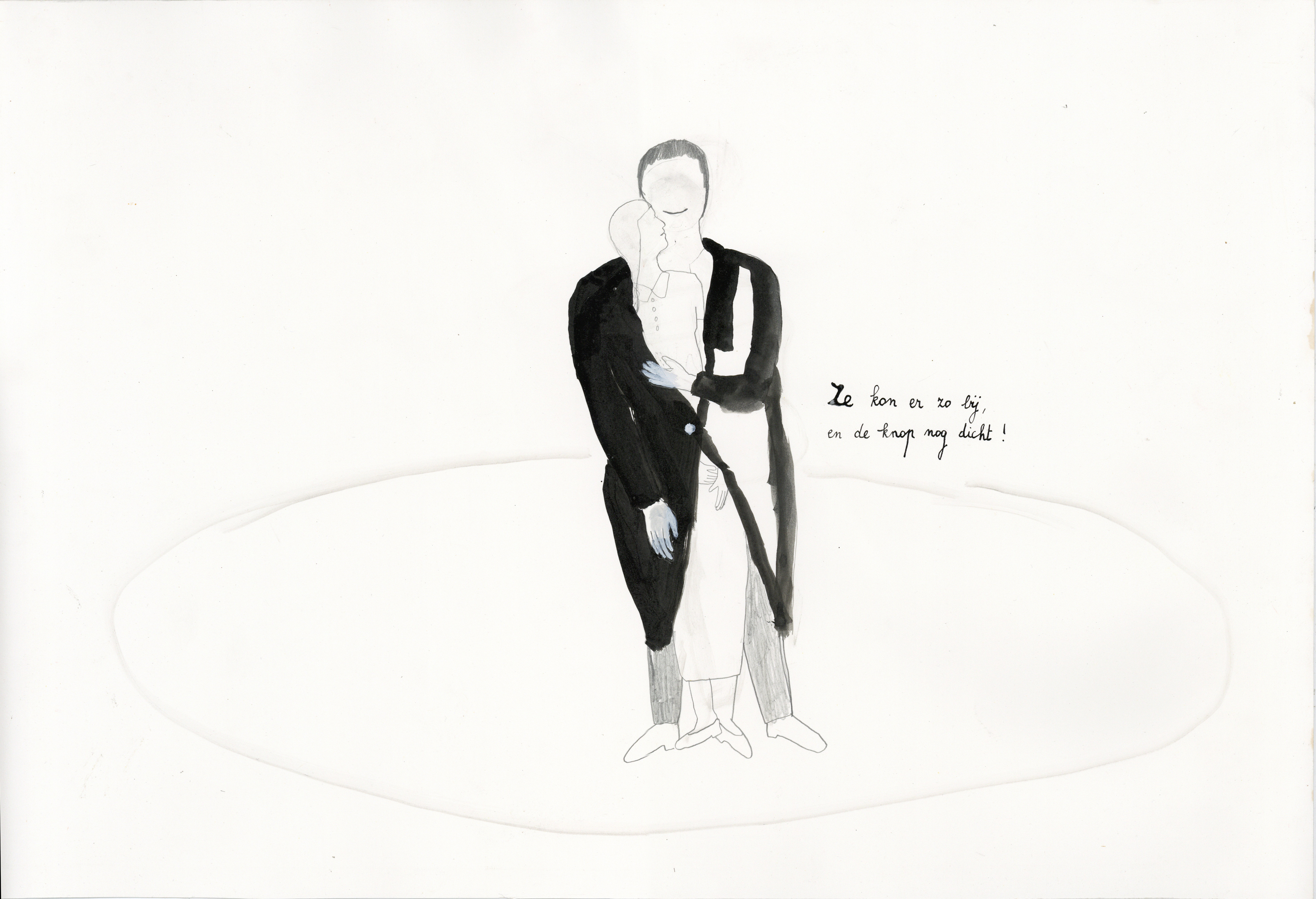Steffie Van Cauter maakte tekeningen op basis van de podcast. Ze vormen een expo die te zien was als lanceringsevent voor GROND in BLANCO.