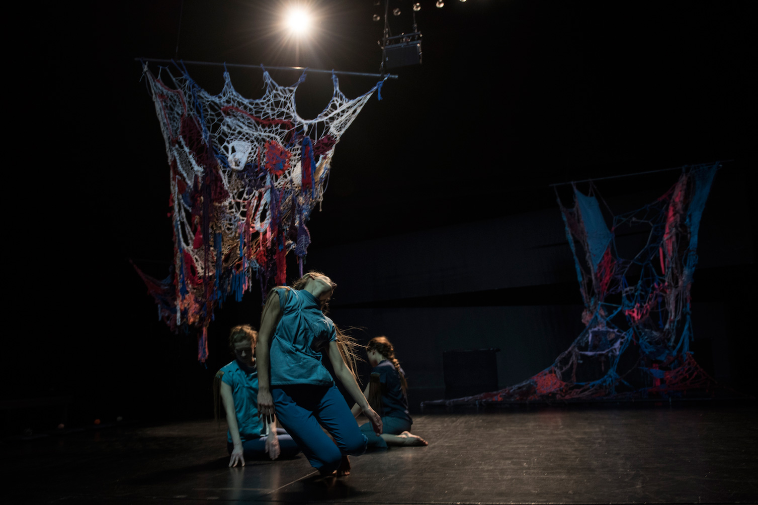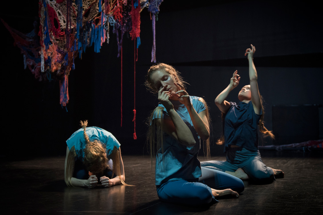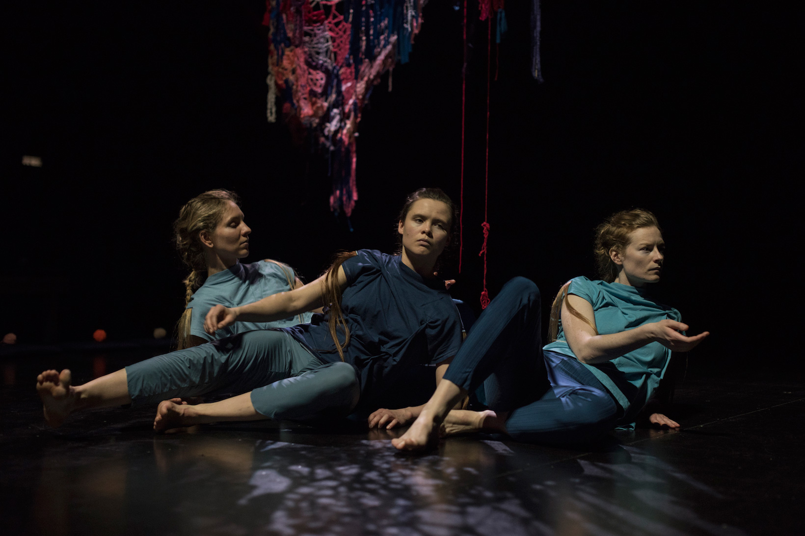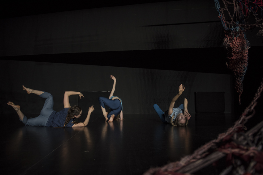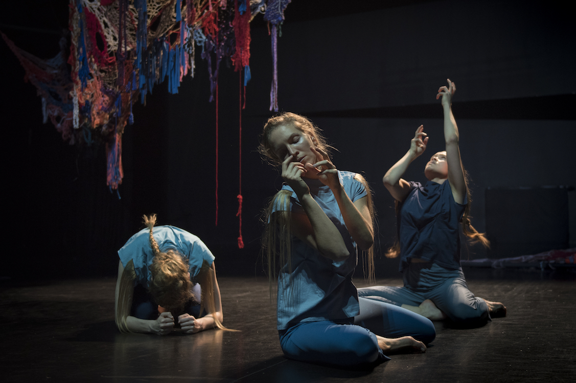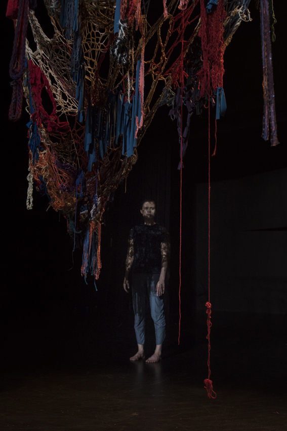 We Will Have Had Darker Futures attempts to weave together the past, present and future; to ask the present to welcome a desirable future by acknowledging the past, and to mix it all up into a time loop allowing our sense of temporality to be blurred. We Will Have Had Darker Futures thinks of possible new futures through daydreaming, language, and dance while continually emphasizing the passage of time in the act of collective finger knitting. Playing with our sense of anticipation, We Will Have Had Darker Futures is a short term detachment from our immediate surroundings, a visionary parallel reality that contemplates the bounds between past and present.